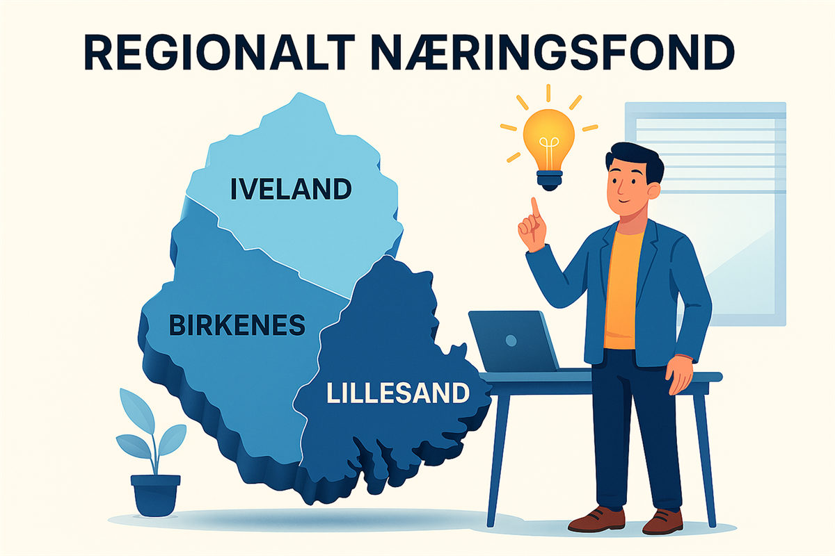 Har du en god ide eller et prosjekt?Har du en god idé eller et prosjekt som kan styrke næringslivet i regionen? Ikke vent – registrer søknaden din i dag! Siste runde for å søke midler fra Regionalt næringsfond for Birkenes, Iveland og Lillesand, har søknadsfrist 30. november. Publisert av Finn Terje Uberg Ansvarlig Lars-Ivar Gjørv Publisert 21.11.2025 18:43 Sist endret 21.11.2025 18:49 Søk om inntil 200.000 kroner:Er du etablert eller kommende gründer, næringsdrivende, oppfinner eller kanskje en klynge og har et kommende prosjekt eller en god idé for å styrke næringslivet i regionen? Det er mulig å søke om inntil kr. 200.000,- fra Regionalt næringsfond for Birkenes, Iveland og Lillesand kommuner. Besøk gjerne våre sider, registrer deg og søk om et tilskudd på inntil kr. 200.000,- for å realisere din ide eller prosjekt.Søknadsfristen er søndag 30. november 2025. Regionalforvaltning - søknadsskjemaHar du en god idé eller et prosjekt som kan styrke næringslivet i regionen? Søk innen 30. november