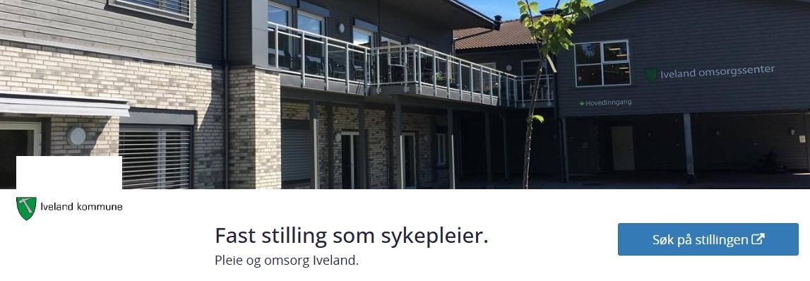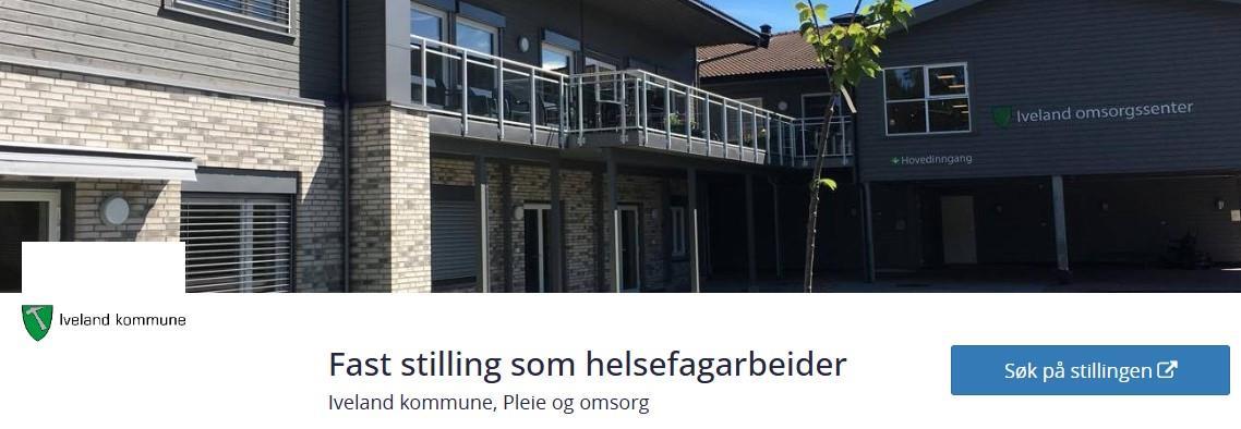Ledige stillingerVi søker en engasjert og faglig sterk rådgiver, innen plan og byggesak, som ønsker å bidra til en god utvikling av kommunen. 100% fast stilling. Søknadsfristen er 16. november. Vi har også ledige stillinger som sykepleier og helsefagarbeidere. Publisert av Finn Terje Uberg Ansvarlig Kristin Berge Publisert 28.10.2025 10:22 Sist endret 14.11.2025 11:35 Vi søker en engasjert og faglig sterk rådgiver, innen plan og byggesak, som ønsker å bidra til en god utvikling av kommunen - søknadsfrist 16. novemberVil du være med å forme fremtidens Iveland?Hos oss får du en variert arbeidshverdag med stor grad av selvstendighet og mulighet til å påvirke. Iveland kommune bygger på kjerneverdiene modig, raus og troverdig.Les hele stillingsannonsen Søknadsfristen er søndag 16. november.Ledige stillinger innen pleie og omsorg: Ledig stilling som sykepleierVi har ledig en 100% fast stilling som sykepleier. Stillingen innebærer for tiden turnus med arbeid dag, kveld, og 3. hver helg.Les hele stillingsannonsenSøknadsfristen er 30. november.HelsefagarbeidereIveland kommune har ledige faste helge-stillinger for helsefagarbeidere, med arbeid 3. hver helg i turnus. Det er for tiden dag/kveld. Med mulighet for langvakter. Den ene helgestillingen er for tiden på natt.Les hele stillingsannonsenSøknadsfristen er 30. november Bli bedre kjent med oss: Klikk på bilde - video integrert i brosjyren på side 2