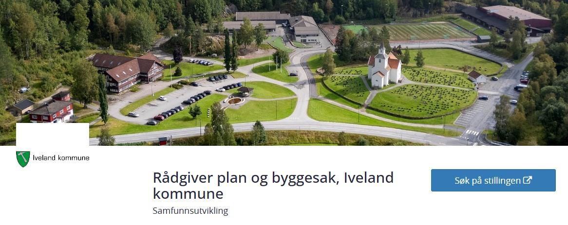 Rådgiver plan og byggesakVi søker en engasjert og faglig sterk rådgiver, innen plan og byggesak, som ønsker å bidra til en god utvikling av kommunen. 100% fast stilling. Søknadsfristen er 16. november. Publisert av Finn Terje Uberg Ansvarlig Egil Mølland Publisert 28.10.2025 10:22 Sist endret 28.10.2025 10:25 Vi søker en engasjert og faglig sterk rådgiver, innen plan og byggesak, som ønsker å bidra til en god utvikling av kommunen - søknadsfrist 16. novemberVil du være med å forme fremtidens Iveland?Hos oss får du en variert arbeidshverdag med stor grad av selvstendighet og mulighet til å påvirke. Iveland kommune bygger på kjerneverdiene modig, raus og troverdig.Les hele stillingsannonsen Søknadsfristen er søndag 16. november.Bli bedre kjent med oss: