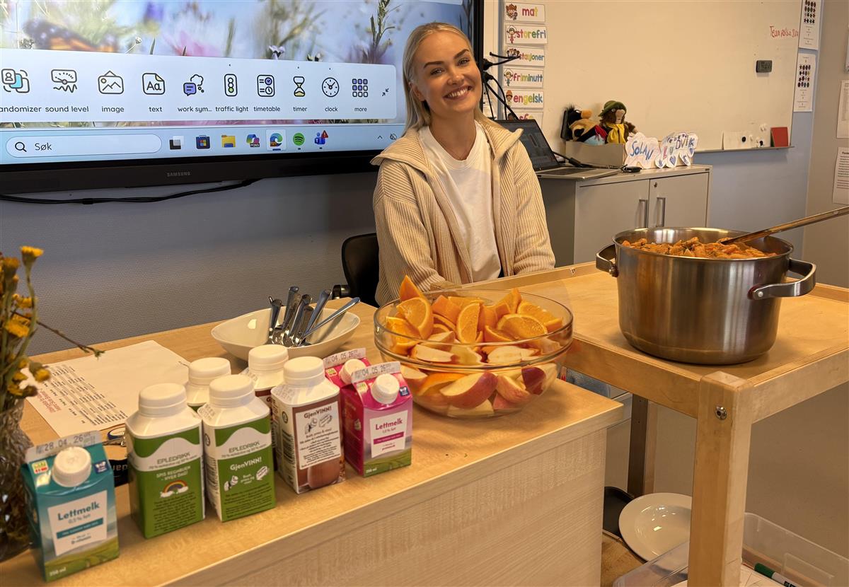 Det er tid for lunsj i 2. klasse. Kontaktlærer Tiril Engevik Hjørnevik er fornøyd med den nye ordningen